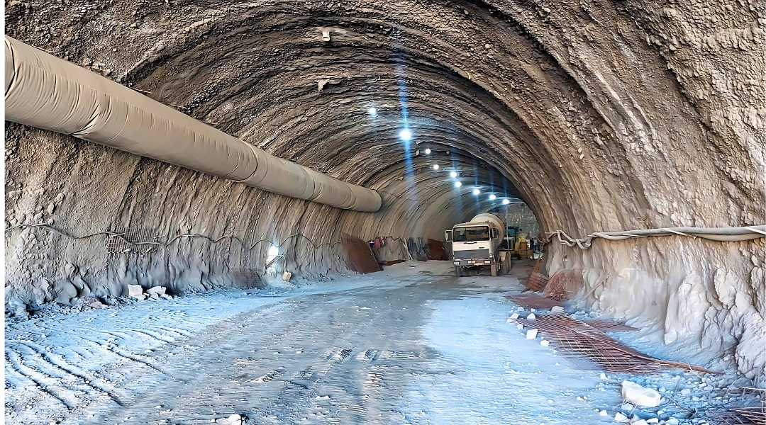 مهمترین چالش در زمان احداث تونل، حجم زیاد آب در بالای تونل بود که مشکلات قابلتوجهی در زهکشی، عملیات انفجار و حفاری ایجاد میکرد. برای رفع این مشکل، بخش عمده عملیات حفاری از سمت خروجی تونل انجام شد تا امکان تخلیه طبیعی آب از طریق شیب زمین فراهم شود و عملیات در سمت ورودی تونل در فصول خشک ادامه یافت.