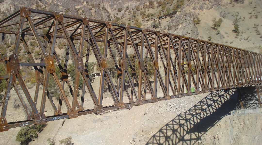 پل خرپایی دو طبقه چال فهره، با طول دهانه 81 متر، وزن 230 تن، عرض 5/5 متر و با