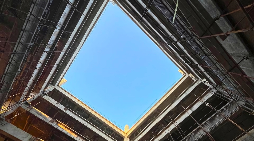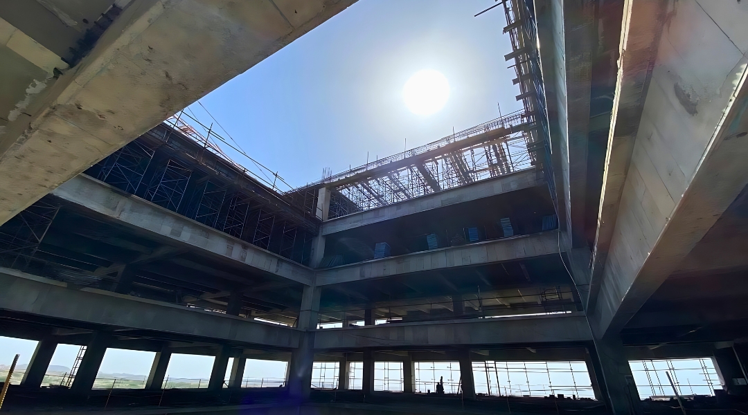 سازه بتنی این ساختمان به طور کامل اجرا شده و در حال حاضر اجرای سیستم های تاسیساتی و اسکلت فلزی جهت اجرای نما در پوسته دوم در دست اجرا است .