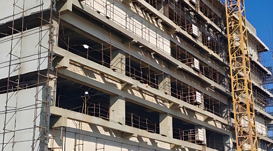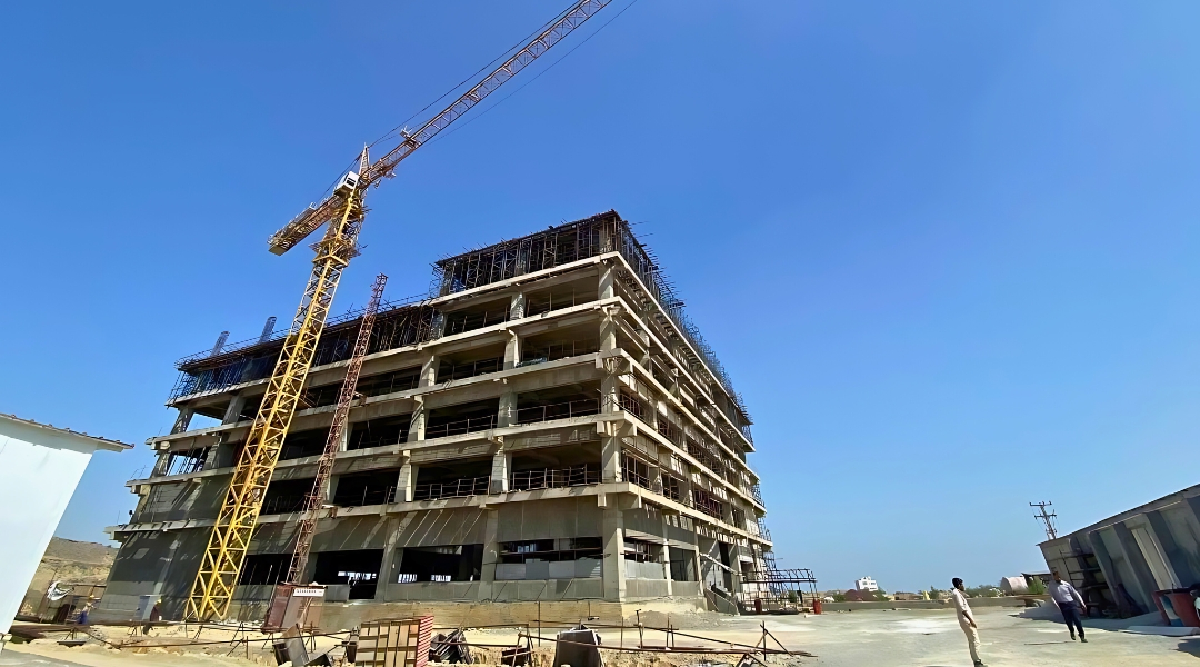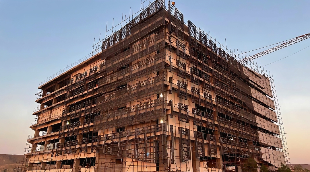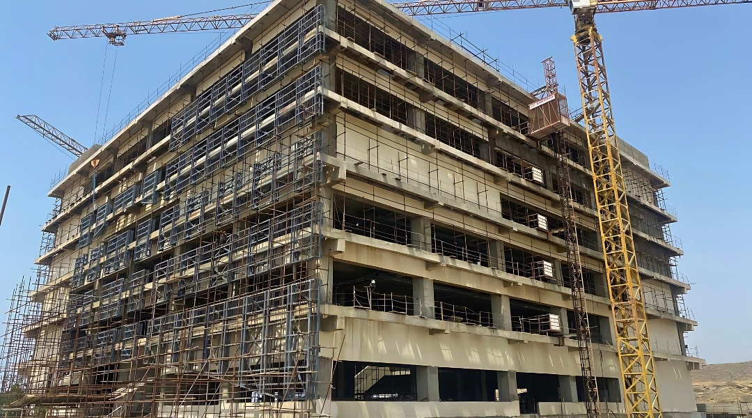 سازه بتنی این ساختمان به طور کامل اجرا شده و در حال حاضر اجرای سیستم های تاسیساتی و اسکلت فلزی جهت اجرای نما در پوسته دوم در دست اجرا است .